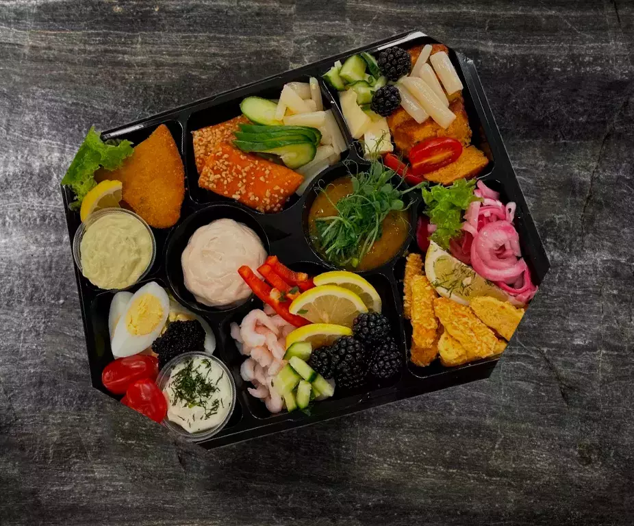 Lækker Fiskeanretning på brød fra Delikatessen.